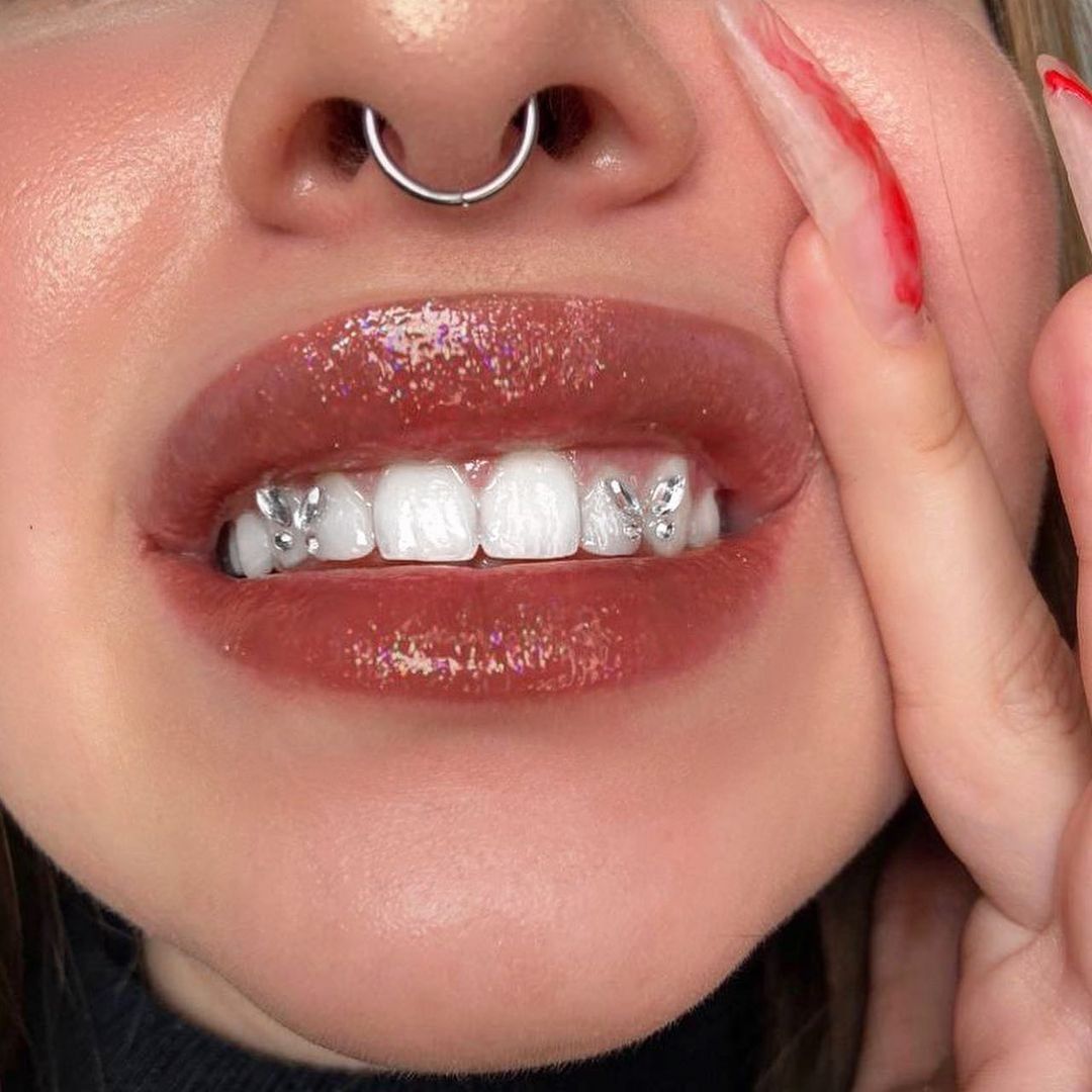 Apply – Add a small amount of dental-grade adhesive and place the gem
